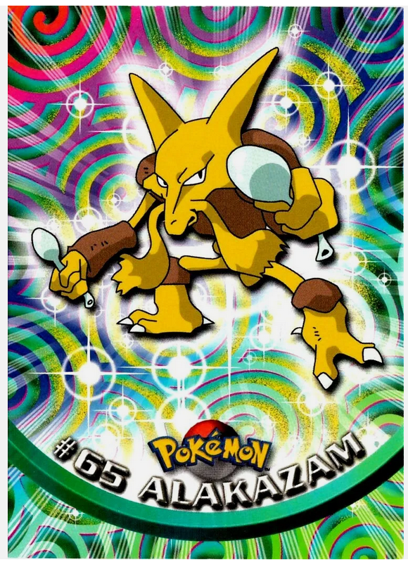 ALAKAZAM, # 65, SERIES 1, YEAR 1999, TOPPS, BLUE LOGO IN NM CONDITION Condition Used Seller Notes “IN NM CONDITION, ALWAYS INSIDE PLASTIC SLEEVE” Set SERIES 1 Country/Region of Manufacture United States Features First Edition Card Type Pokémon Manufacturer Topps Language English Rarity Excluding Tax: $0.08 $0.91 Add To Cart Buy Now Call Us WhatsApp Description Condition UsedSeller Notes “IN NM CONDITION, ALWAYS INSIDE PLASTIC SLEEVE”Set SERIES 1Country/Region of Manufacture United StatesFeatures First EditionCard Type PokémonManufacturer ToppsLanguage EnglishRarity Common Delivery Orders are packed and shipped same day if the order is placed before 3:00p.m. Central Standard Time. All orders are shipped via standard delivery. If you require expedited delivery, please contact us.